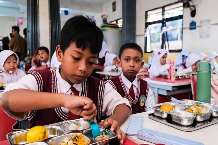 Murid Sekolah Dasar sedang menyantap Makanan Bergizi Gratis (MBG). Foto/Ist