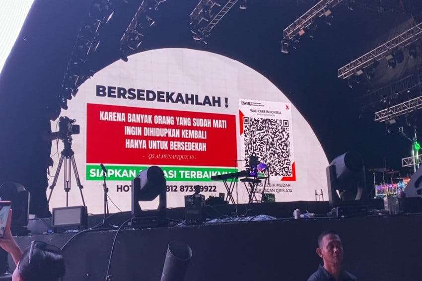 Wali mengajak para penonton untuk bersedekah di tengah penampilan mereka. Mereka menampilkan kode barcode di layar videotron dan disambut antusias penonton.