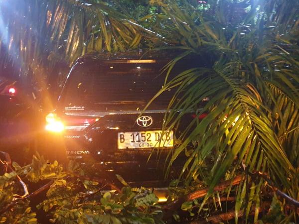 Hujan Deras Sebabkan Pohon Tumbang Timpa Dua Mobil di Semanggi